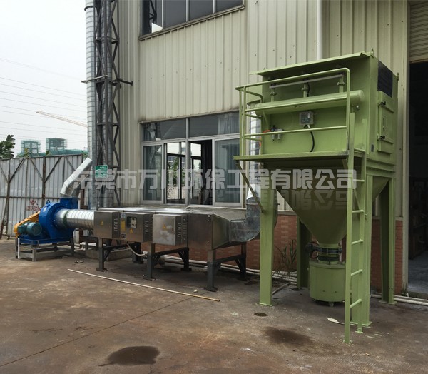 華工公司需要處理的污染物是有機廢氣和塑料粉塵,塑料粉塵的特點是顆粒大,自重大。根據華工公司的實際情況和以往的相關工程經驗,我們工程師采用了“脈沖濾筒除塵器+UV光解凈化器處理”這套工藝。